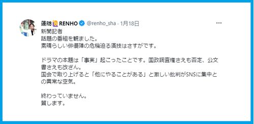 蓮舫「新聞記者素晴らしい」⇒ガーディアン紙「幼稚な見解 単なるメロドラマ」Netflix「海外でも高評価」の実際