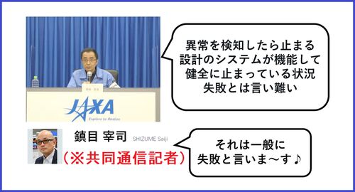 共同通信鎮目記者「それは一般に失敗と言いま~す♪」と誘導尋問と捨て台詞:JAXAのH3ロケット打ち上げ中止で開発責任者「異常を検知したら止まるシステムが機能」