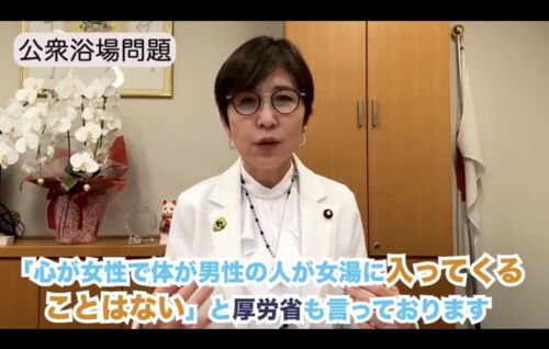 稲田朋美議員「男性が女湯に入ることは無いと厚労省が言ってます」⇒岩手県庁「性自認に適合した利用を認めないのは不快感を与える恐れ」