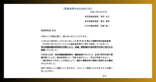 高木功介埼玉県議のクルド人による襲撃事件の記者会見が許可取消しに:議会の内部規律の裁量か、集会の自由か