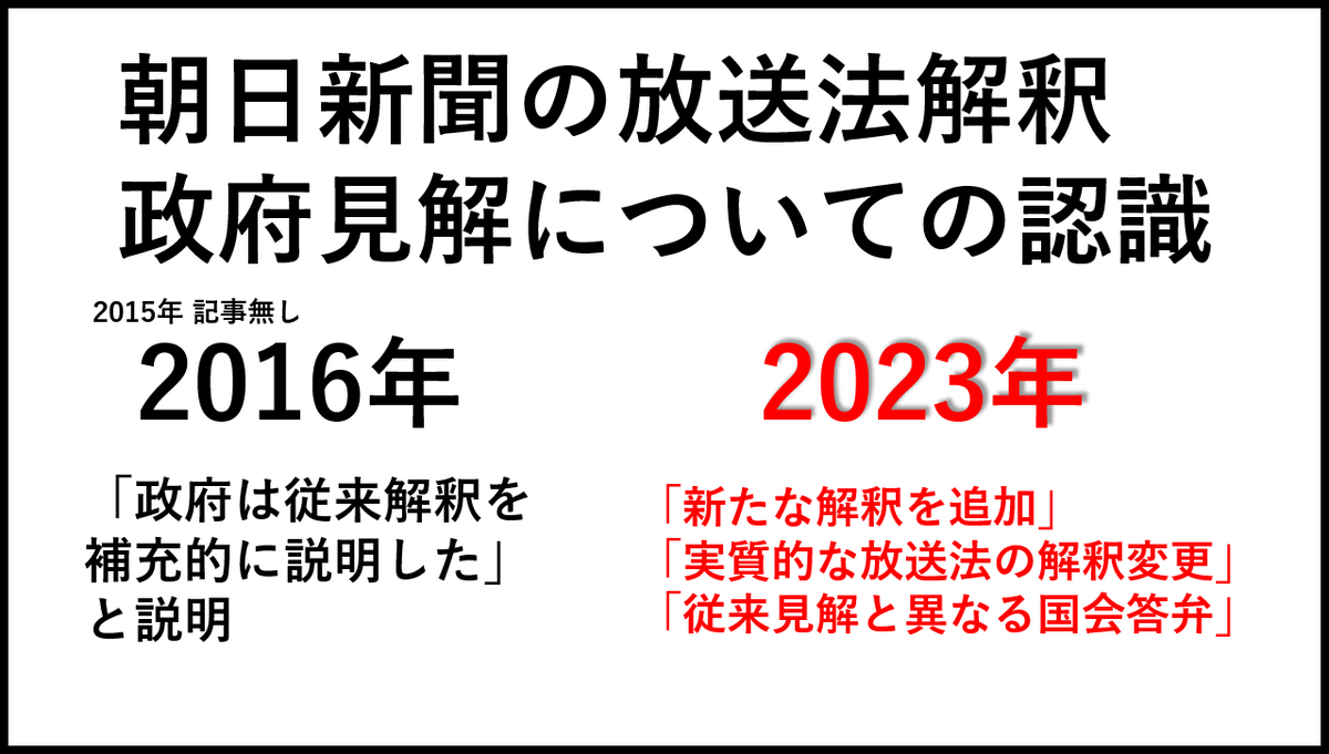 要するに、放送法に関する政府見解に関して、2023年3月に解釈変更をしたのは朝日新聞の方ではないか?