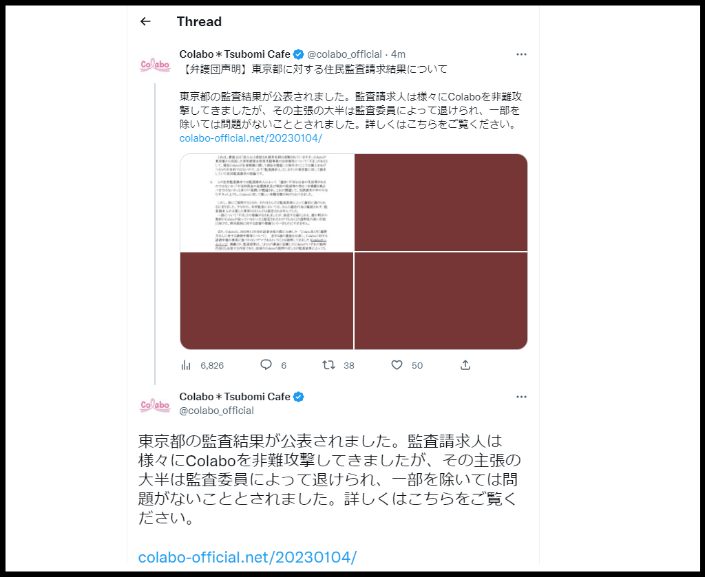 - Colabo弁護団は謎の勝利宣言:やはりツイート削除も