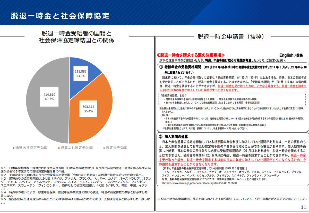 永住者の脱退一時金受給と社会保障協定の通算処理対象国の少なさ