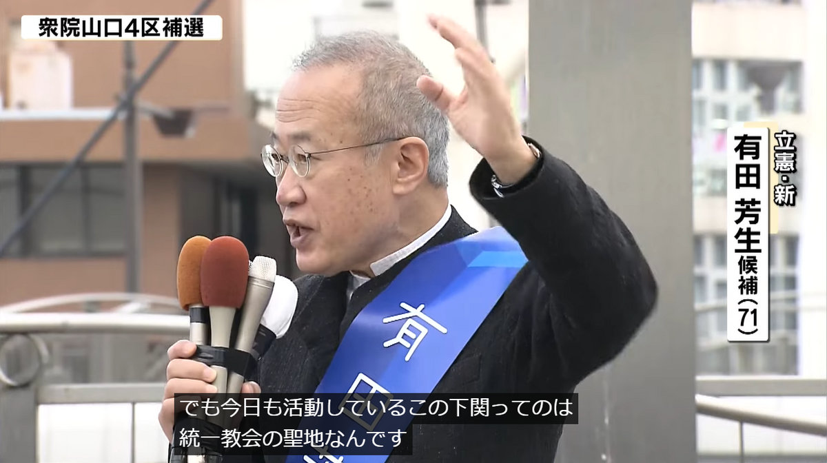 有田氏は「下関は統一教会の聖地という発言は、統一教会がそう言っていることの指摘であり、僕は下関をそうさせないため立候補した、放送されているのは切り取り・印象操作だ」という主張です。