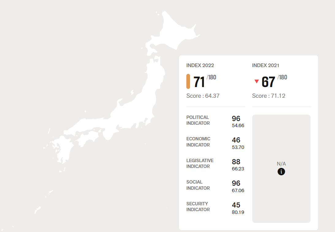 - 国境なき記者団の報道の自由度ランキング2022