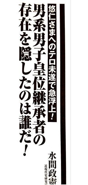 「悠仁様へのテロ未遂で急浮上!男系男子皇位継承者の存在を隠したのは誰だ!」