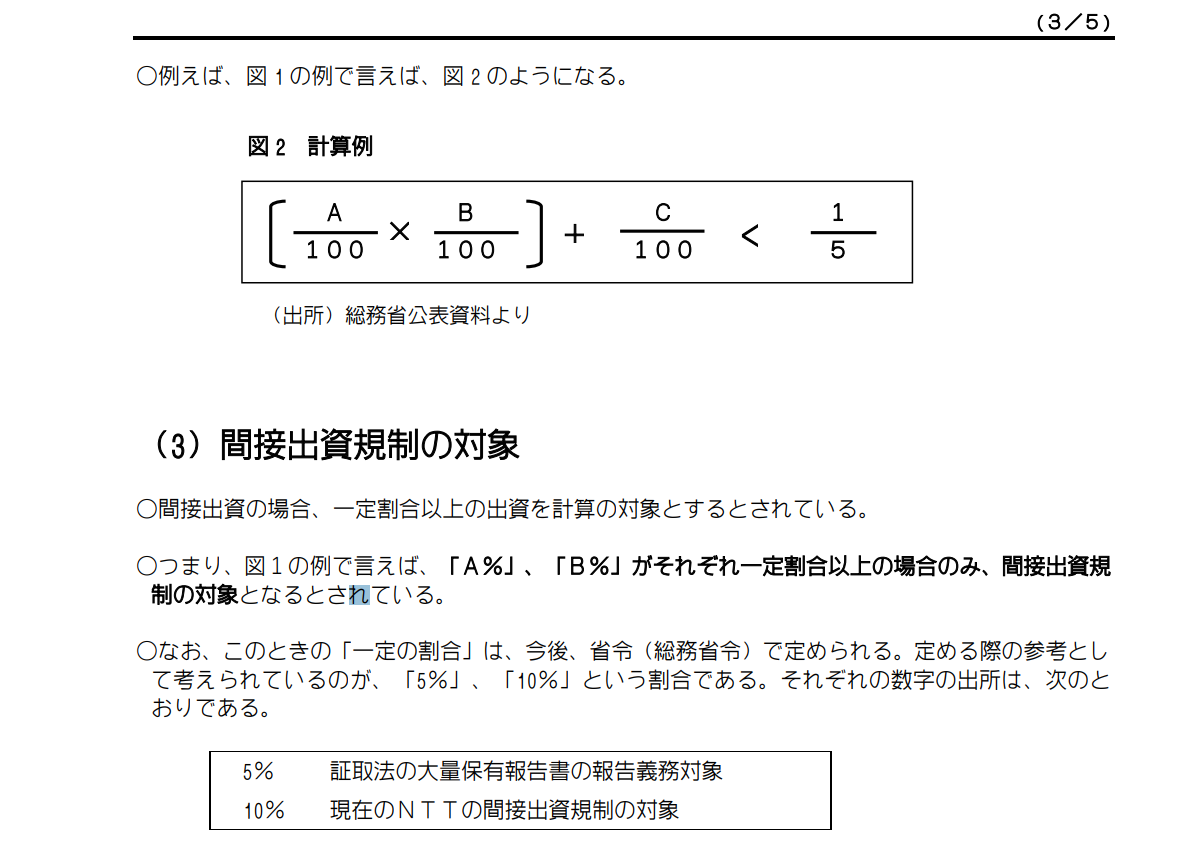 その上で、外資規制20%は電波法に基づいて規定されていますが、これは保有株式率ベースではなく、その株式における議決権ベースです。